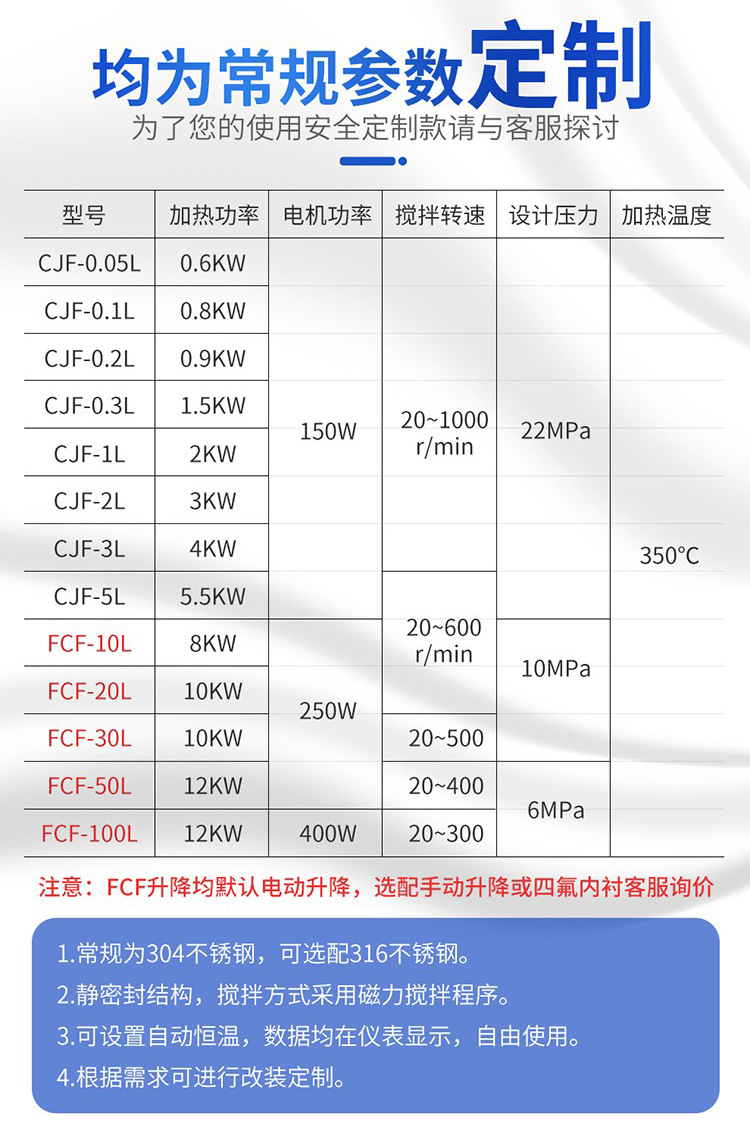 FCF系列實驗室磁力攪拌反應釜系氣一液、液一液、液一固或氣一液一固三相化工物料進行化學反應的攪拌反應裝置,可使各種化工物料在較高的壓力、真空、溫度下充分攪拌,以強化傳質和傳熱過程。