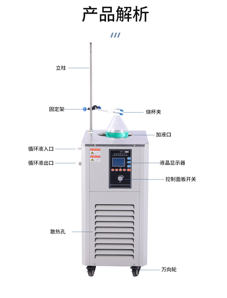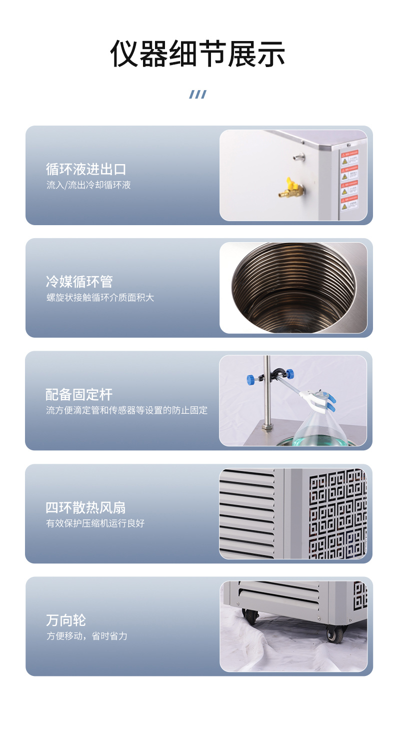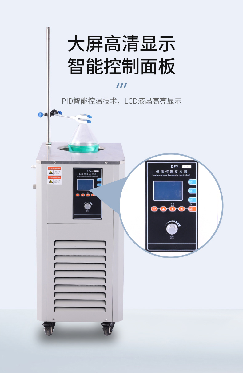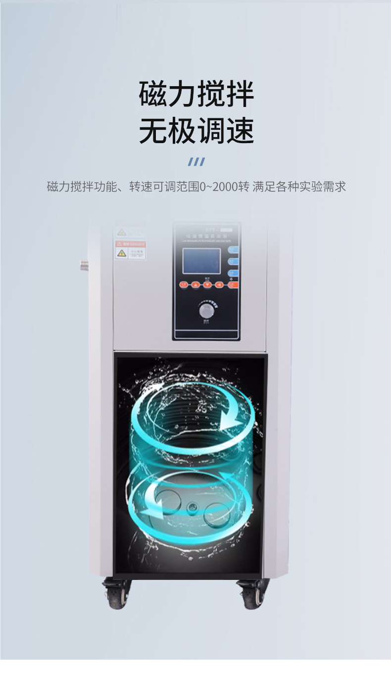 低溫恒溫反應浴(槽)可代替干冰和液氮做低溫反應和相關設備提供低溫條件,又可以作為低溫恒溫水槽做運用粘度的測定,具有底部磁力攪拌,分兩段攪拌,使不銹鋼槽內溫度更均勻,智能控溫等特點。